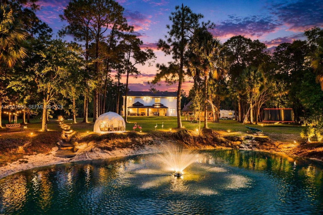 Welcome to a private estate in Indiantown offering a rare combination of space, privacy, and modern upgrades. Situated on an expansive lot, this two-story residence features a grand circular driveway and a stately columned entry that creates a strong first impression. Inside, the home offers bright and open living spaces with updated finishes throughout. The kitchen is designed with quartz countertops, stainless steel appliances, and ample cabinetry, providing both functionality and style. Bathr...Welcome to a private estate in Indiantown offering a rare combination of space, privacy, and modern upgrades. Situated on an expansive lot, this two-story residence features a grand circular driveway and a stately columned entry that creates a strong first impression. Inside, the home offers bright and open living spaces with updated finishes throughout. The kitchen is designed with quartz countertops, stainless steel appliances, and ample cabinetry, providing both functionality and style. Bathrooms have been tastefully renovated with contemporary fixtures, glass-enclosed showers, and designer tilework.The property is ideal for both everyday living and entertaining, featuring a dedicated home theater room and additional flexible spaces for recreation or work. Outdoor amenities include a covered patio area, tiki hut-style structure, and a spa, creating a comfortable setting for gatherings or relaxation. A private pond enhances the natural surroundings and adds to the overall sense of tranquility.With ample space for RVs, boats, and equipment, this property offers flexibility rarely found in South Florida. No HOA restrictions provide additional freedom for use, expansion, or investment potential. Conveniently located with access to major roadways while maintaining a quiet, rural setting. Property may be sold furnished, offering a turnkey opportunity for end-users or investors. A unique opportunity to own a versatile property with lifestyle and long-term value.