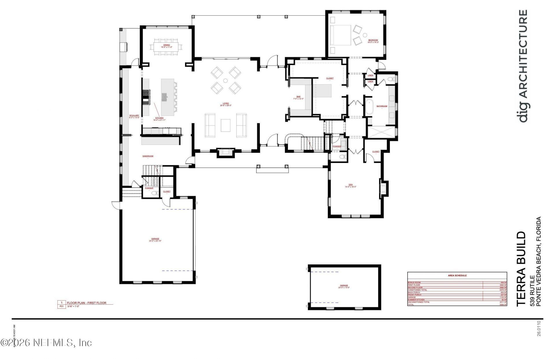 Welcome to 539 Rutile Drive, an exceptional new construction residence in the heart of old Ponte Vedra Beach. Designed by Dig Architecture and masterfully built by renowned McAneny Builders, this turnkey residence embodies sophisticated luxury at its finest.Encompassing just under 7,000 square feet of exquisitely designed living space, the thoughtfully curated floor plan blends effortless hosting with everyday comfort. A dramatic oversized glass entry door welcomes you into an elegant foyer gall...Welcome to 539 Rutile Drive, an exceptional new construction residence in the heart of old Ponte Vedra Beach. Designed by Dig Architecture and masterfully built by renowned McAneny Builders, this turnkey residence embodies sophisticated luxury at its finest.Encompassing just under 7,000 square feet of exquisitely designed living space, the thoughtfully curated floor plan blends effortless hosting with everyday comfort. A dramatic oversized glass entry door welcomes you into an elegant foyer gallery with direct lagoon views, creating an unforgettable first impression. The heart of the home, the oversized family room, is anchored by a gas masonry fireplace, and is perfectly positioned to capture both sunrise and sunset views. When you are ready to entertain, the foyer and family room open to a striking designer bar that can be discreetly concealed behind doors or fully opened for effortless hosting. The showpiece kitchen is appointed with all the best-in-class appliances you expect: Sub-Zero, Miele, and Lacanche. Just beyond, a sunlit, fully equipped scullery adds both beauty and functionality, while a casual coffee bar transitions seamlessly to the outdoor kitchen, resort-style pool, and waterfront entertaining terrace--perfect for elevated family gatherings. The dining room is gracefully situated off of the kitchen to capture views of the lush backyard and lagoon.Just beyond, everyday living is equally well considered, with a two-car garage connecting to an oversized sunlit mudroom complete with laundry and powder room, while a separate single-car detached garage offers the perfect space for a golf cart, collector vehicle, or sports car.A highlight of the main level is the serene first-floor primary retreat, which serves as a private sanctuary, complete with an expansive bespoke dressing room and a spa-inspired bath bathed in luminous Southern light. Just down the hall is the formal powder room, and a refined private fireside study that offers the perfect executive office or intimate sitting room.Ascend to the upper level to find four beautifully proportioned bedroom suites, each with its own en-suite bathroom and walk-in closet. A spacious family lounge invites effortless family movie nights, games, and everyday gatherings, while a dedicated fitness or flex studio offers versatility for wellness and recreation. Additional upstairs features include a full laundry room, powder room, generous storage closets for seasonal d?cor, and convenient additional rear stair access.Perfectly oriented to maximize its east-facing waterfront setting, the rear elevation captures sweeping sunrise views, tranquil water vistas, and the gentle coastal breezes that define the Old Ponte Vedra lifestyle. Every detail has been carefully considered to create a residence of enduring elegance and privacy in one of the area's most prestigious addresses.Just one block from the beach, with effortless access to A1A, the Ponte Vedra Inn & Club, and top-tier schools, this is a rare opportunity to own a newly constructed luxury residence in prestigious Old Ponte Vedra.